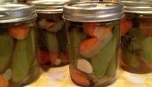 These are those delicious pickled jalepeños and carrots you get at many good Mexican restaurants. Jalepeños vary in spiciness from very mild to pretty darn hot. It is difficult to tell just by looking at them, but if you want to know what you are getting yourself in for, slice a tiny bit off the…